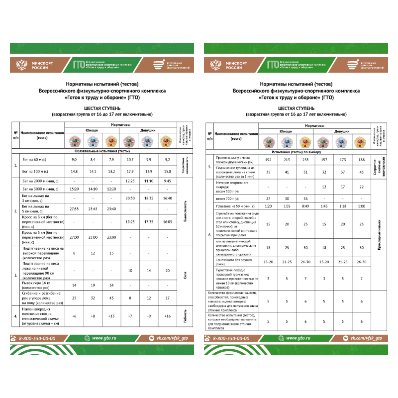 Нормативы ГТО для участников от 16 до 17 лет (VI возрастная ступень)