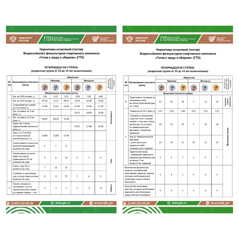 Нормативы ГТО для участников от 50 до 54 лет (XIV возрастная ступень)