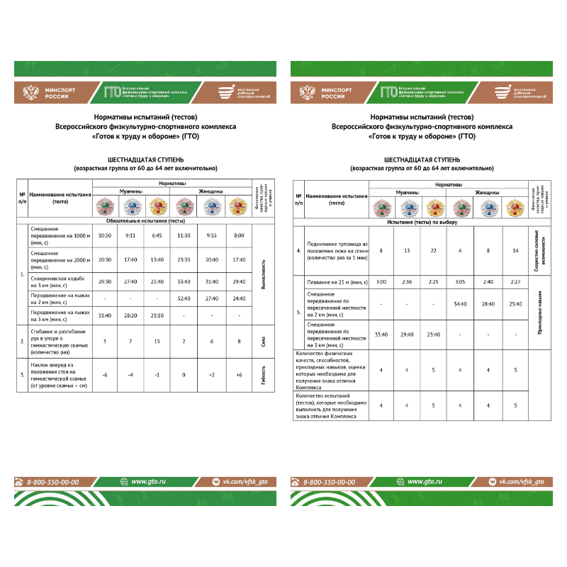 Нормативы ГТО для участников от 60 до 64 лет (XVI возрастная ступень)