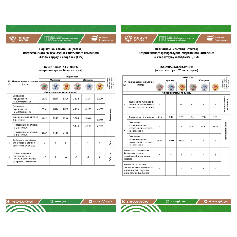 Нормативы ГТО для участников от 70 лет и старше (XVIII возрастная ступень)